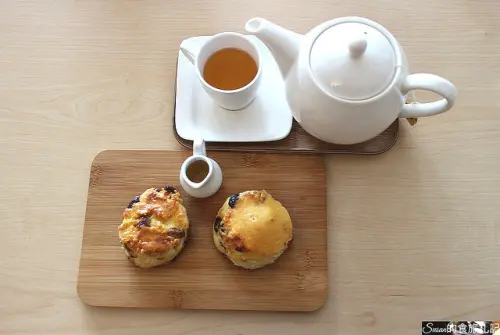 酥脆的司康放上巧巴達搭配帶酸草莓口感相當有層次感