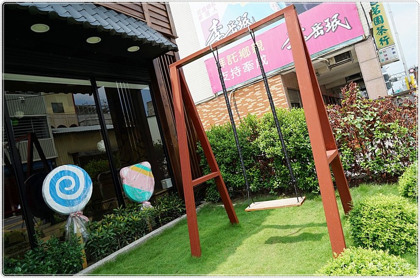 一旁還有小朋友、女孩最愛的棒棒糖造景和盪鞦韆,這盪鞦韆真的可以坐上去喔!