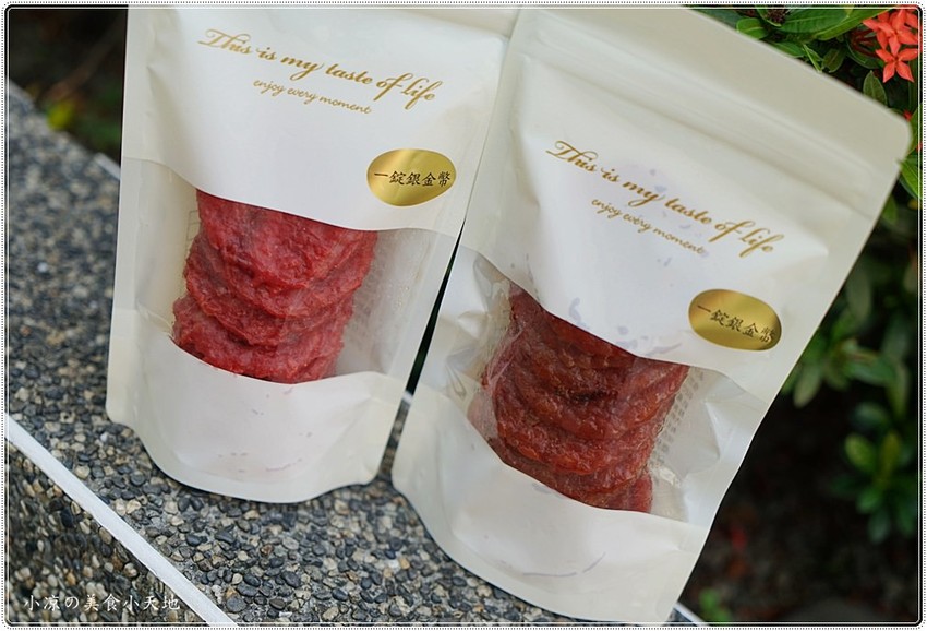 六六相乘手作肉乾家的招牌,一錠銀金幣肉乾又分蒜味、原味