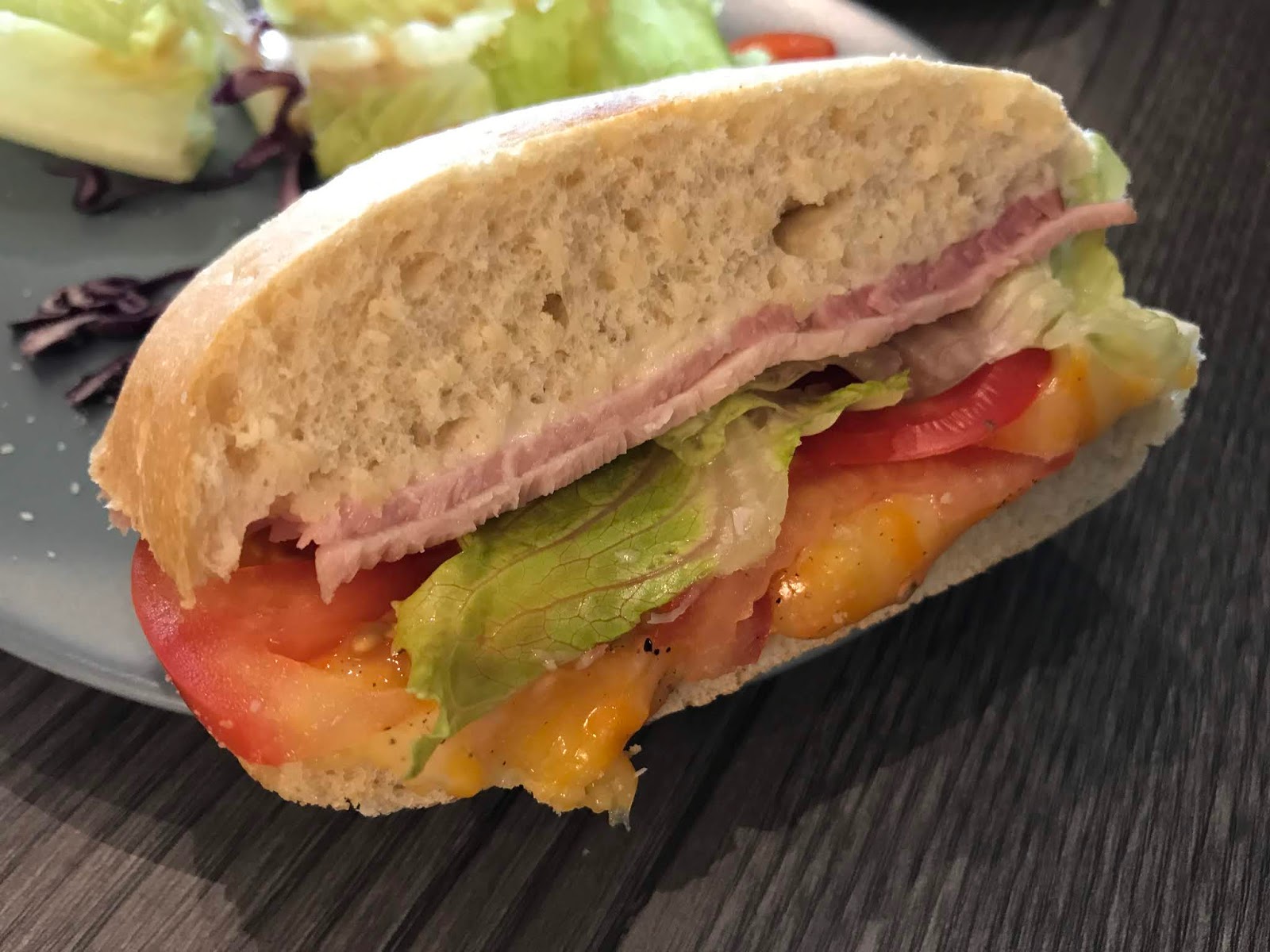 巧巴達麵包口感很棒,吃起來有點嚼竟又不會太硬,燻雞火腿片的品質很好,搭配著新鮮番茄、稍微烤過的起司,吃起來溫暖美味!