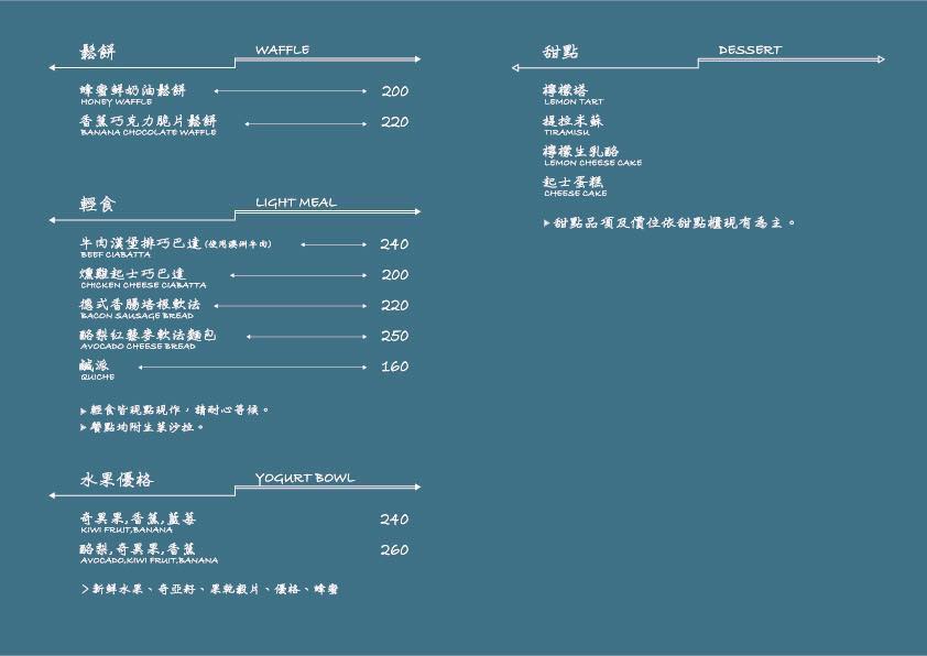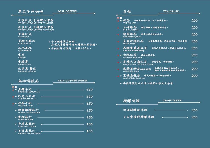 三角咖啡館的低消是一杯飲料,如果假日來會有90分鐘的用餐限制,平日來比較自在可以坐久一點。