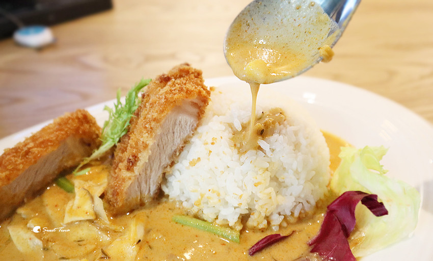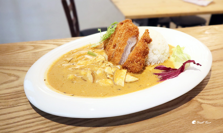 蓮REN的咖哩辣度是固定的,所以如果怕辣的朋友可以選擇加價鮮奶油以調整辣度,這邊的咖哩辣度大約在中辣左右,但因為咖哩帶點南洋風味,所以並不嗆辣,吃小辣的我還滿能接受的。