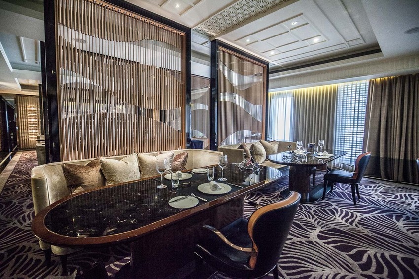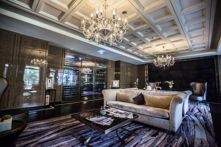服務生將我們帶到候位的空間,以新現代東方的空間美學,融合國際時尚潮流,很難想像這裡只是候位區而已,採用歐式古典風格的家具,開闊壯麗的空間感,儼然就是把百坪豪宅直接搬進餐廳內,坐在沙發上,候位不是漫長的等待,而是一種潮流奢華的體驗