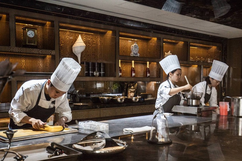 在用餐區的後方還有一個開放式的廚房,這裡是DE LOIN德朗餐廳製作甜點的地方,DE LOIN德朗餐廳還有例如德朗火鍋等分支企業,所使用的甜點都是由這廚房統一製作,在這裡可以看到許多精緻甜點的產出,超酷的!