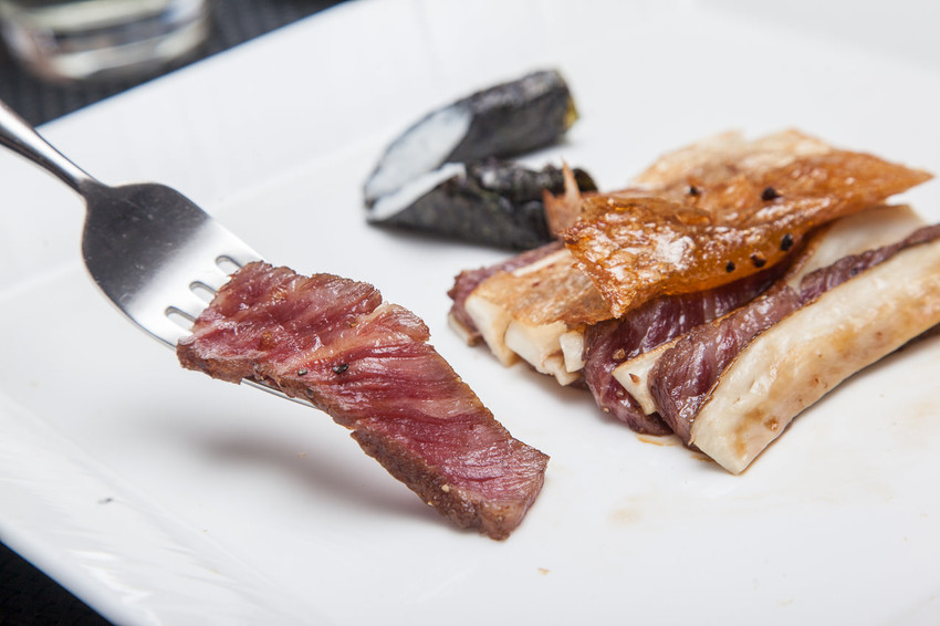 伊比利肋眼是伊比利豬肉中最嫩的部位,是伊比利豬中最好的部位,口感就像頂級牛肉一般柔軟,與鴨肝奶油一起烹調