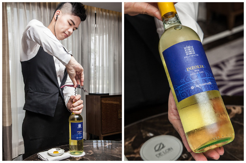 喝完湯品,管家倒了一杯紅酒,看到紅酒上桌,知道主菜要登場啦!