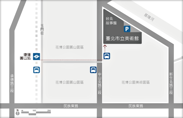 再左轉行進至中山北路三段,於右前方即可抵達美術館。
