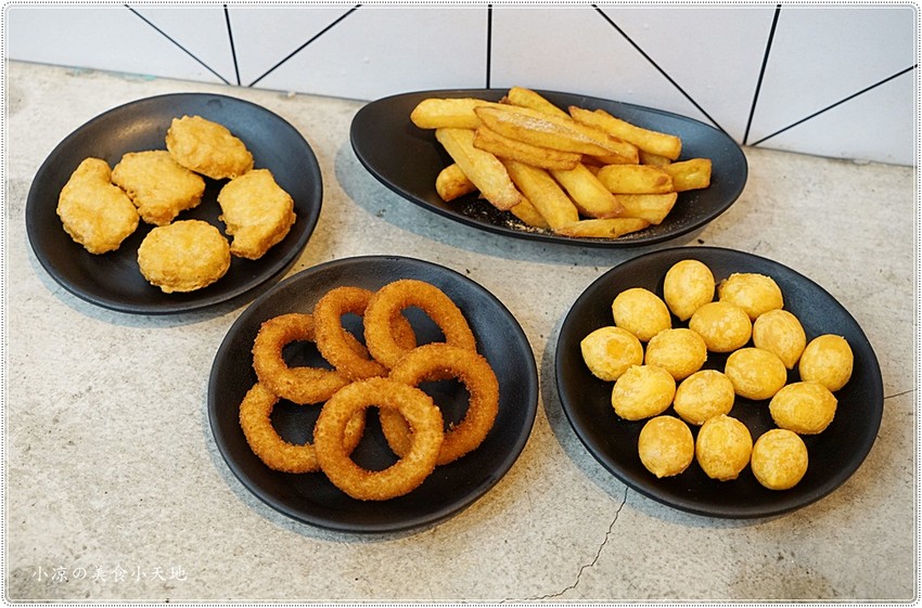 炸物,地瓜球、洋蔥圈、雞塊、薯條、地瓜薯條