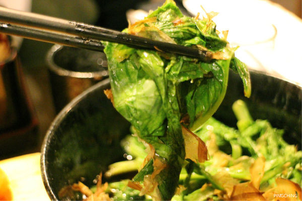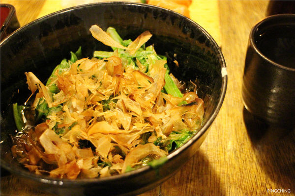 ▲ 燙青菜50元,滿滿一整碗份量相當多,搭配柴魚片一起食用非常可口對味哦!