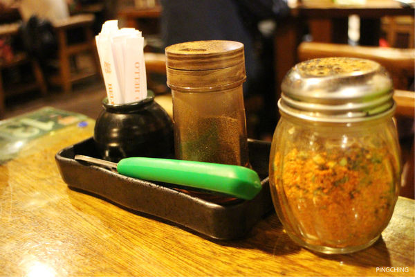 ▲ 每一個餐桌上都會附上開瓶器、牙籤、胡椒粉及七味粉給予用餐時使用