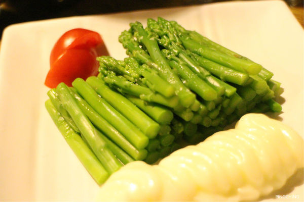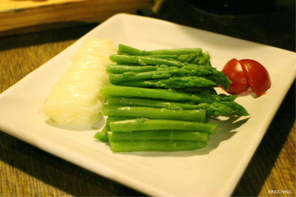 ▲蘆筍沙拉100元,吃起來冰涼清爽,非常解油膩