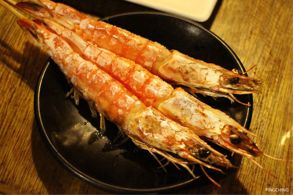 ▲鹽燒白蝦60元,裹上鹽巴入夥烤至熟成的白蝦,吃起來酥酥脆脆~