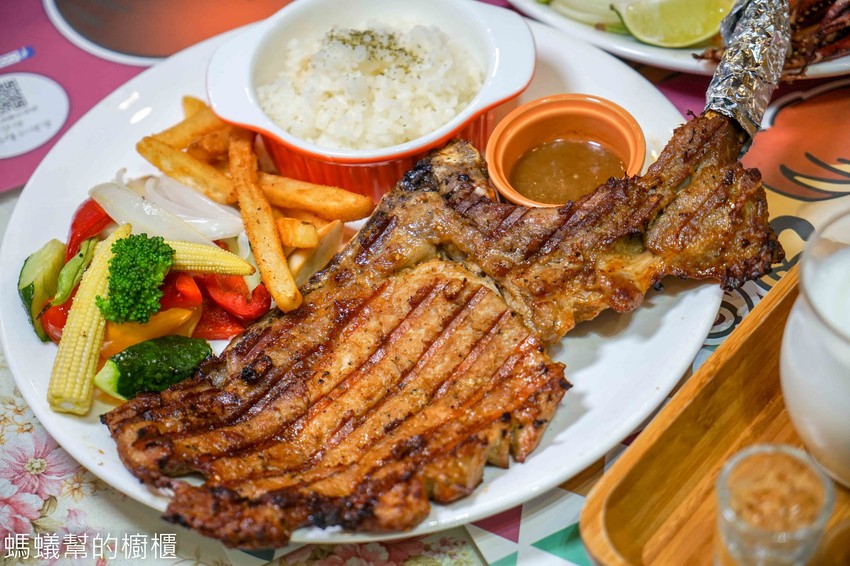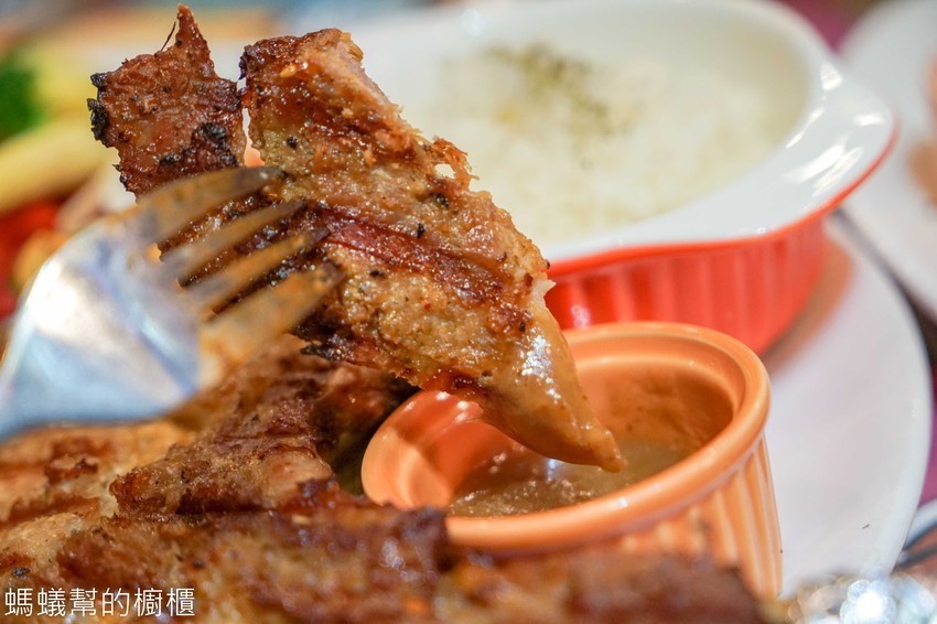 豬排香味十足,醃的夠味,微微的焦香吃起來讓人欲罷不能!豬肉紮實不乾柴,吃起來焦脆的口感越吃越香,單配沾醬另有風味跟鹹度,一切都取決於燒烤的功夫,讓這道豬排視覺跟美味同時兼具。