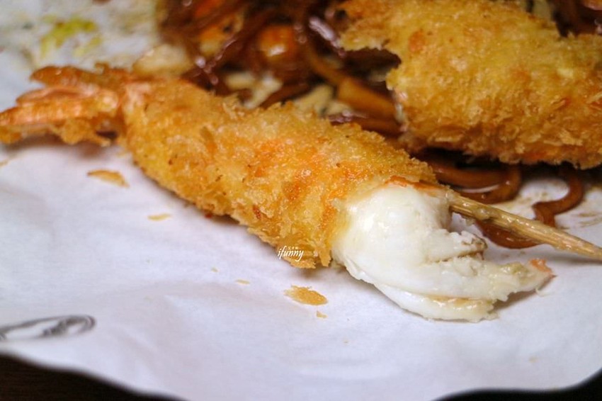 瞧這輕薄的麵衣之下,飽滿濕潤的蝦子,一咬下Q彈的蝦肉及滿溢著鮮甜滋味,立刻充滿在口腔之中,這炸蝦真的很可以欸!