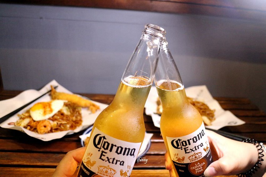 在夏日夜晚吃這炒麵,少不了冰涼的啤酒,所以我們也點了一些下酒菜。