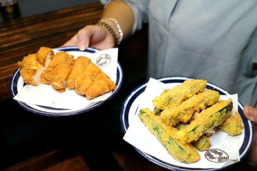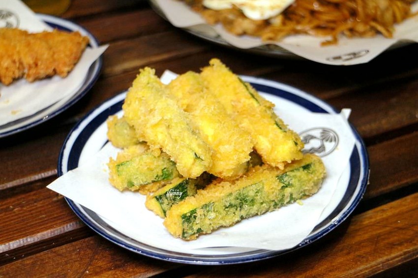 一般櫛瓜都出現在西式料理中,平常在家也是灑上鹽巴用烤箱烤來吃,這樣裹上麵衣炸得香酥,感覺很有賣相呢!