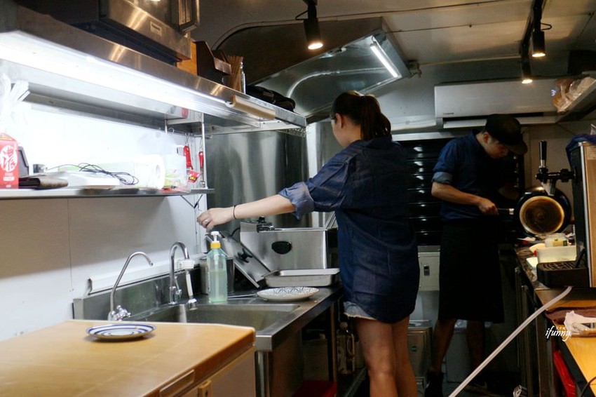 原來這是一台配備齊全的餐車,所有的餐點都是在此完成。