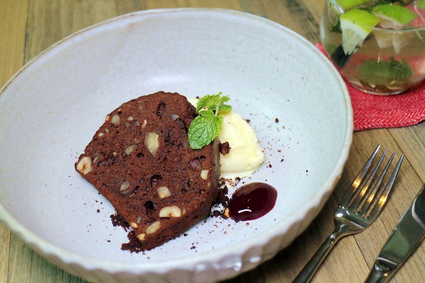 濃郁的香蕉胡桃入口是滿滿的香氣,巧克力並不會太甜,鬆軟的口感搭上冰涼的冰淇淋,就是個完美的結局。