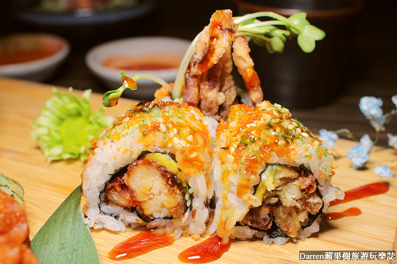 色彩繽紛的軟殼蟹卷壽司,軟殼蟹肉酥香可口,