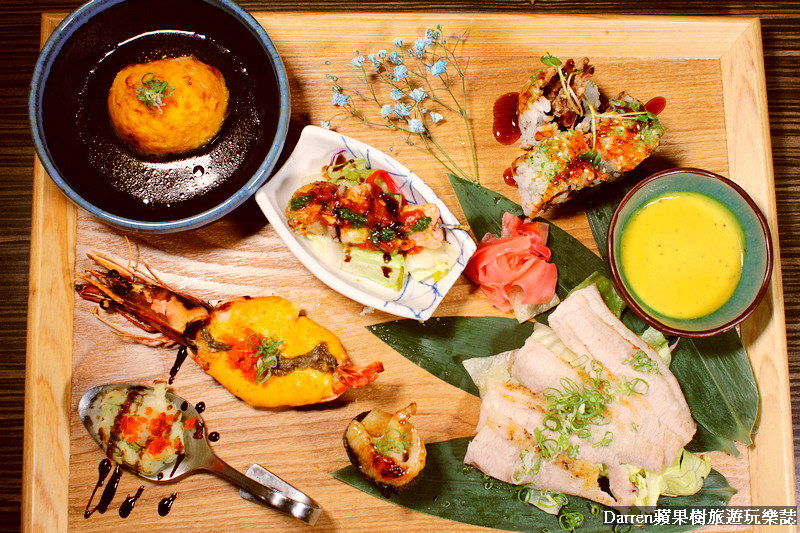 花酒蔵台北餐廳週午間套餐 $699+10%,很喜歡他們家的擺盤,色彩豐富看起來很熱鬧,讓人食慾大增