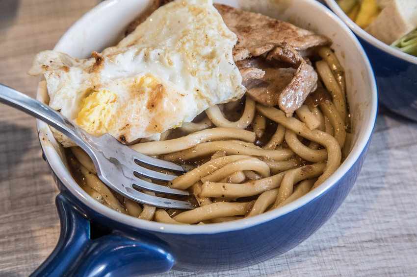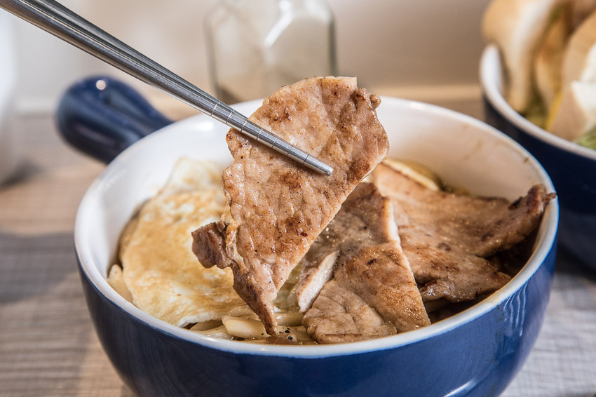 鐵板烏龍麵-黑胡椒(加豬排)