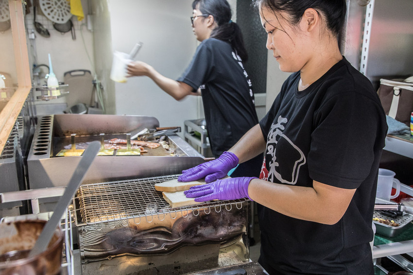 喬妹碳烤吐司舖-桃園民生店採開放式廚房的設計,可以直接看到所有料理的過程,對消費者來說,看的到也比較放心