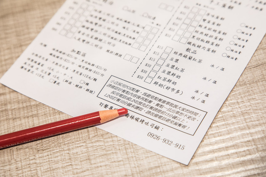 點餐是用點餐單畫單,所有餐點現點現做,且採用POS點餐,需要小小的等候一下,如果有特殊需求也請先提出,也可採用電話或是LINE點餐(請提前15分鐘以上預約),這樣也可以減少在現場等候的時間唷