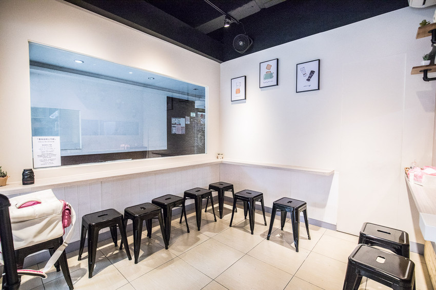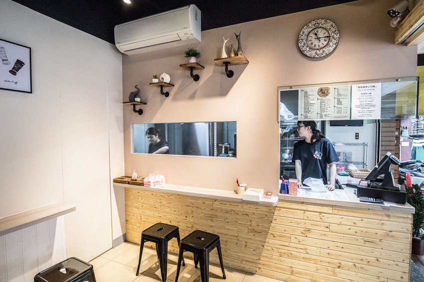 走入喬妹碳烤吐司舖-桃園民生店,同樣延續著外觀相同的裝潢風格,座位是沿著牆面設置,因為店內用餐空間其實不大,這樣的用餐環境設計可以讓空間有效的利用,中間的地方就可以讓客人進來吹冷氣等外帶