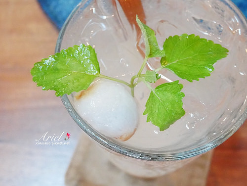 上頭還放了整顆的荔枝與薄荷葉作點綴