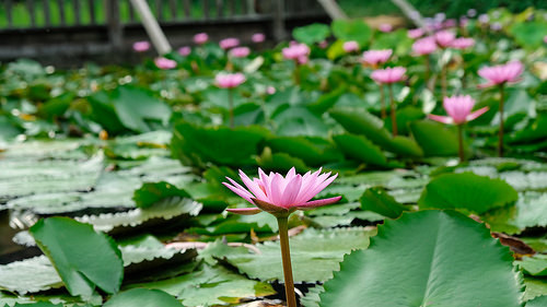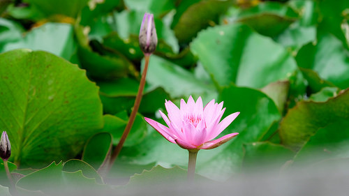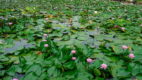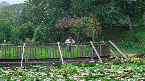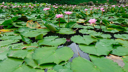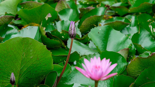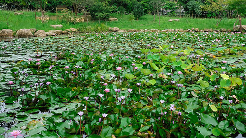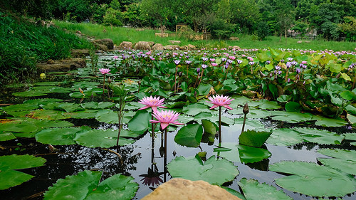 雖然名為苓蘭荷花池親水公園但實際上裡面卻也擁有滿滿的睡蓮,睡蓮與荷花的不同從葉子可以分出來,睡蓮的頁面是鋪於水面,荷花蓮花則是露出水面的。