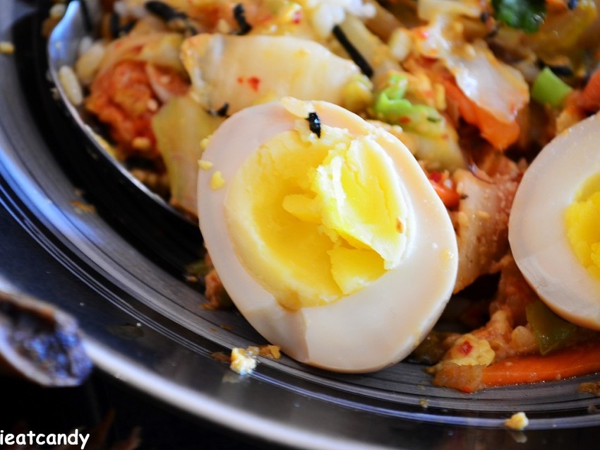 除了這吸睛度百分百的肋排,底部丼飯也不要錯過,鋪上知名泡菜的丼飯很涮嘴,令人忍不住一口接一口,還附上整棵約七八分熟的溏心蛋,滋味更加豐富。