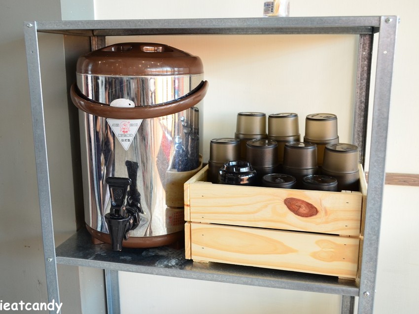 一旁有提供熱麥茶自助,小朋友餐具可以在這裡自取。