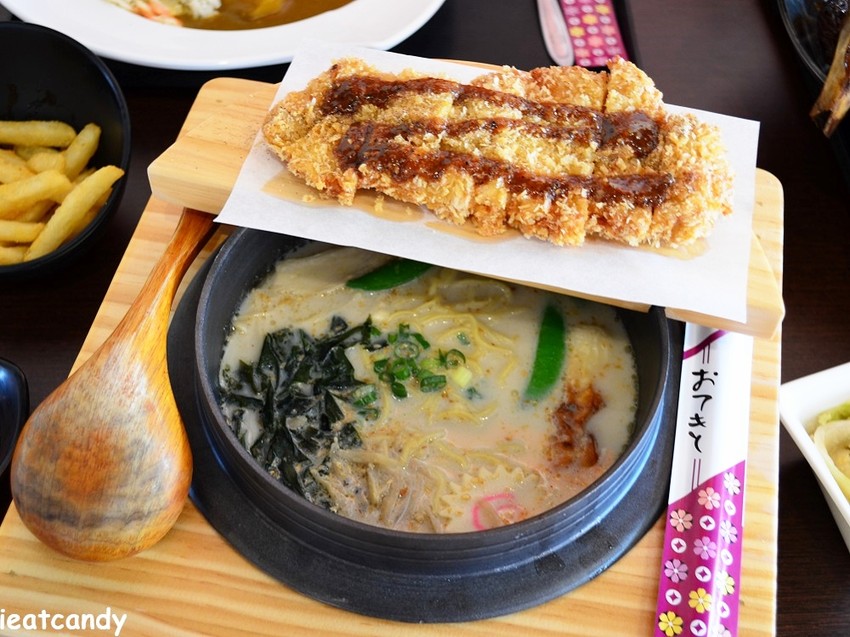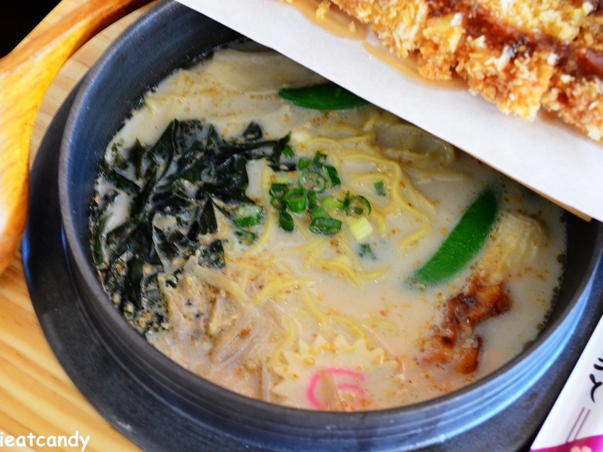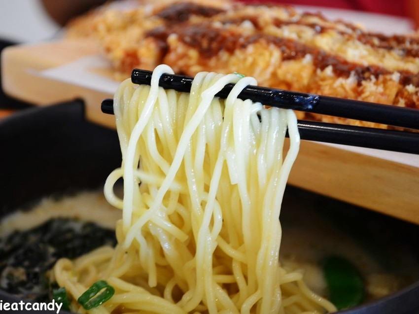 這是家人的照燒豬排拉麵(豚骨白湯),豬排的厚度及分量也是十足!上面淋的照燒醬是愛伊特以前回憶中常吃到喜歡的口味~鹹中帶甜,豚骨白湯口味沒有這麼重(有可能我先品嘗了咖哩),順口好喝,麵條則是細拉麵,直接咻咻咻就吃下肚。