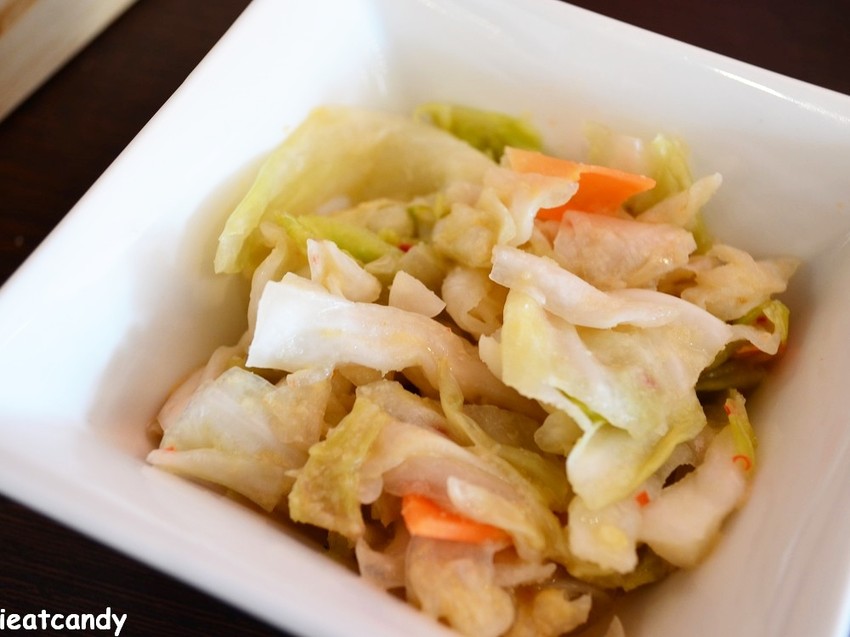 黃金泡菜吃下去的第一口,”很適合夾臭豆腐吃”是我腦海隨之浮出的話語,酸中帶甜,白菜保留脆口的清爽風味,很涮嘴。