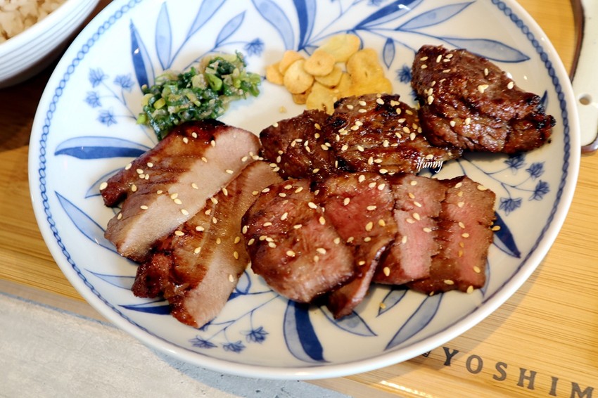 第一次拜訪吉村牛舌, 很想多試點不一樣的,所以這個三拼是最好的選擇了!一次滿足三種招牌餐點。限定牛三拼中,有厚切牛舌2片,薄切牛舌4片及牛小排4片。