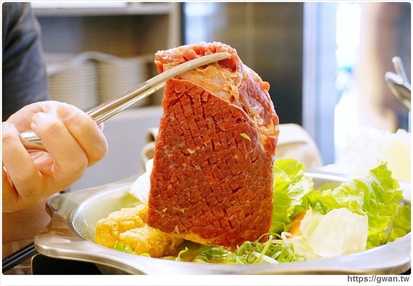 第一次看到整塊牛排放到火鍋裡煮的,覺得也太特別
