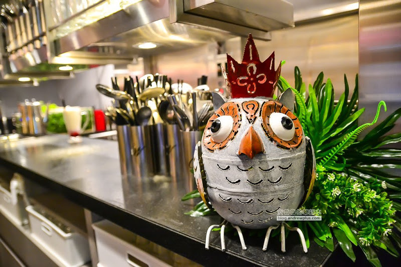 一進來的右手邊是烹調工作區,這裡的佈置是不鏽鋼廚具、不鏽鋼的牆面和不鏽鋼的餐具,讓人覺得有股嚴謹、專業的冷冽感