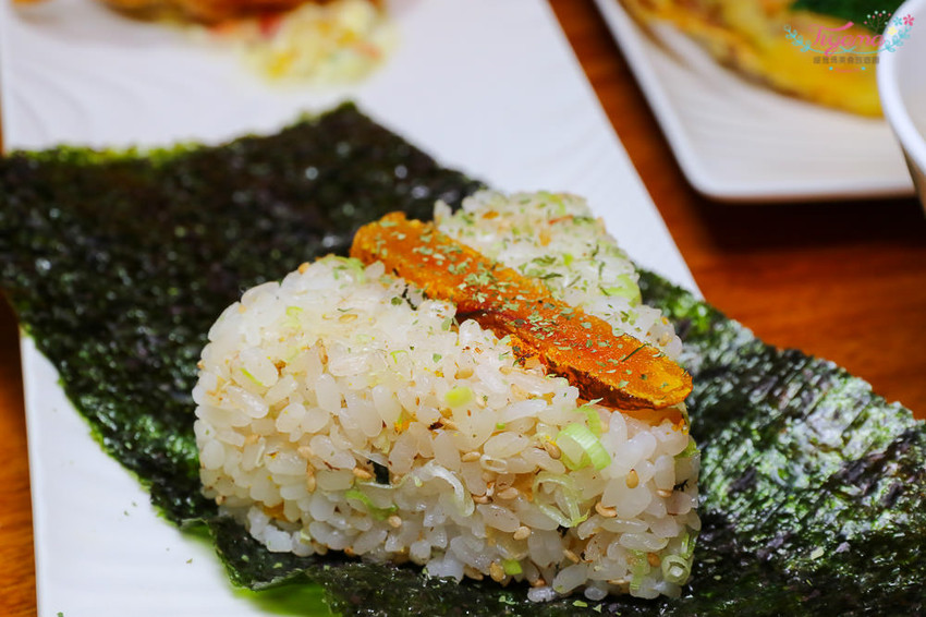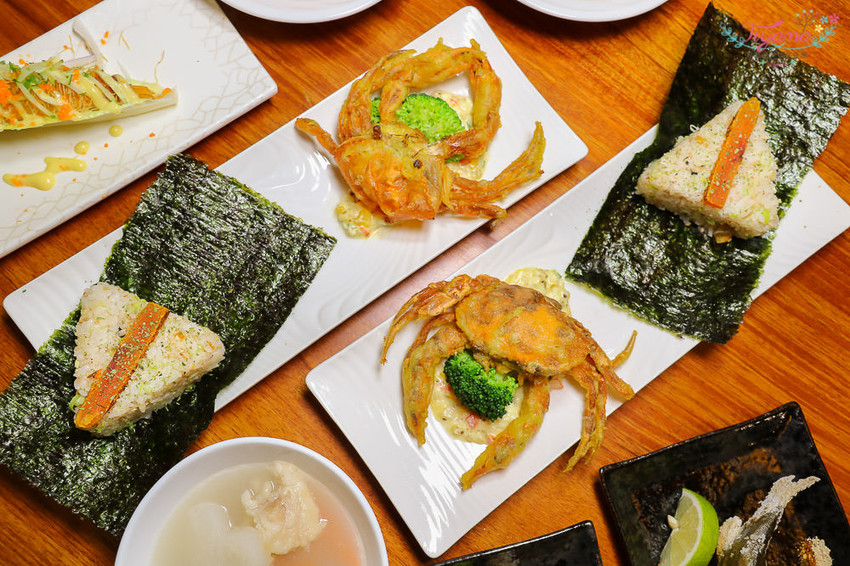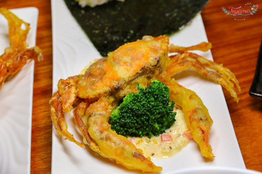 哇呼…看到炸到金黃誘人色澤的軟殼蟹和烏魚子飯糰,有莫名的興奮感,引人食慾…