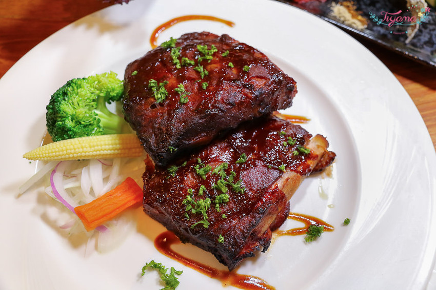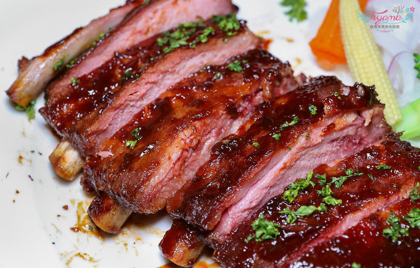 重調味「蜜汁炭烤豬肋排/2人份」是十足的下酒菜,鮮嫩多汁,肉汁醬汁…鹹香入味,讓人吮指回味是愛啃族的最愛(舉手…),一人一大塊,不怕吃不夠!!