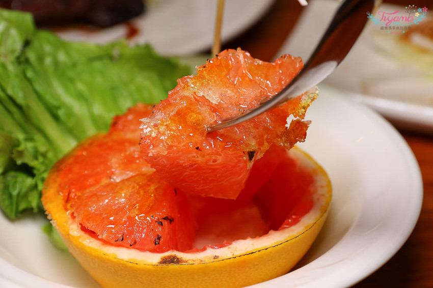 「焦糖葡萄柚」用新鮮葡萄柚簡單變身為飯後甜點,表層焦糖…焦香脆口,酸酸甜甜,連平常不愛吃葡萄柚的緹爸也開心完食。