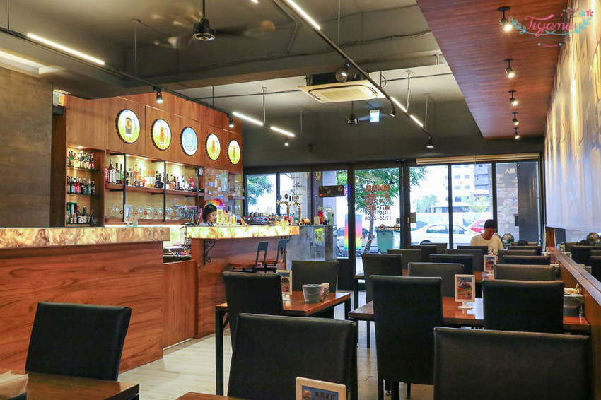 夏天太陽較晚下山,自然光照射進來…用餐境境是簡約美式餐廳風格,到了晚上頗有幾分美式鄉村酒吧餐廳的感受。