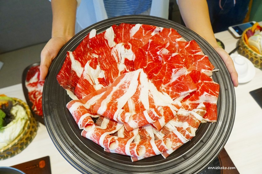 擺在肉盤裡的肉片一上場氣勢依舊驚人,老闆果然大器,肉片都超豪邁的,雖然我不能吃牛肉,但同行的好友都說超嫩超好吃的,看這肉盤一下子就掃光的程度,真的是好吃無誤。