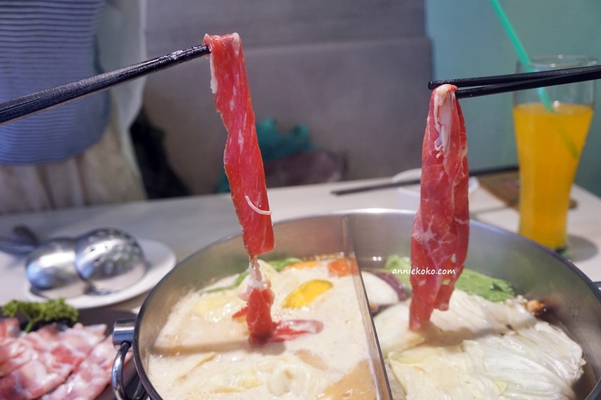 小肥牛超誇張的,肉片也太豪邁啦,而且輕涮個幾下就可以吃了,這畫面是不是很誘人啊。