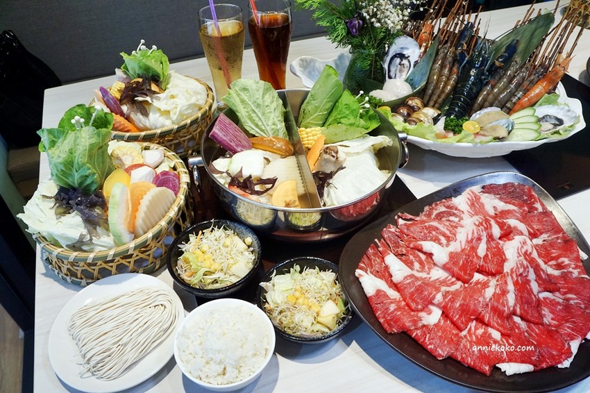 海鮮煮到變色就可以撈起食用了喔,煮完後湯頭還是好清澈,右邊這鍋是昆布湯,很有日式的甘甜風味,非常清爽,涮肉或是海鮮都很搭。