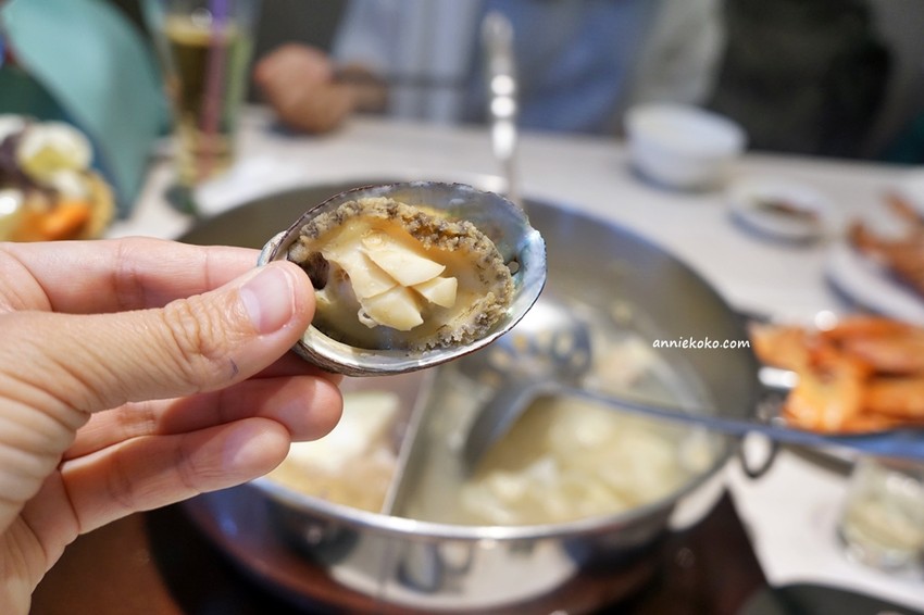 另外還有扇貝、九分文蛤、九孔鮑以及台灣鯛魚,不囉嗦,通通丟下去煮吧,左邊那鍋高湯煮完蝦子後,一整個都是蝦子的鮮味,莫名還蠻好喝的呢。