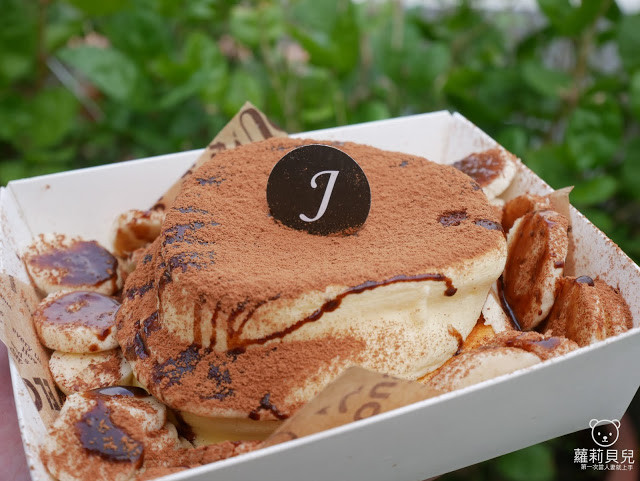 兩層的厚鬆餅塗上有點香草味的醬汁