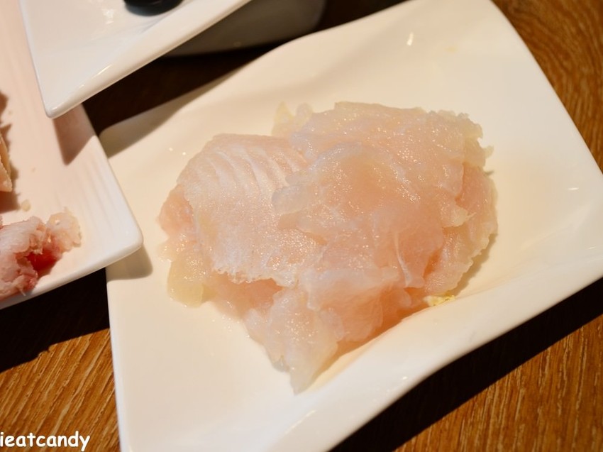 手工花枝漿是現在許多火鍋店都有的品項,裡面可以看到明顯花枝丁,吃起來軟Q軟Q,很不錯。