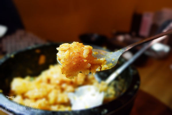 店員會先協助拌炒,若喜歡吃鍋巴的人須再等一會兒,讓石鍋底層慢慢形成鍋巴