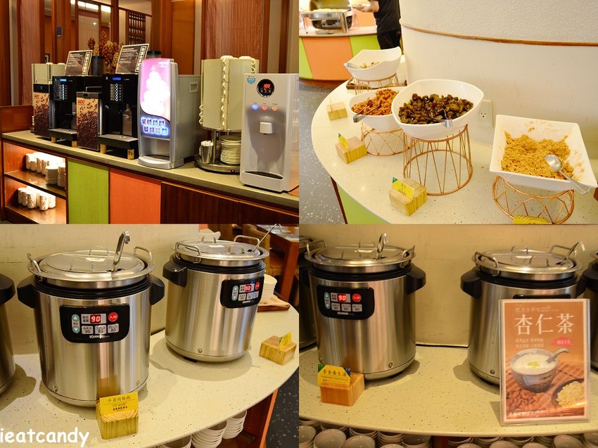 菜色很多元,熟食、生食、蔬食應有盡有,最值得推薦的是他們的湯品,是平常很少看到在自助吧會出現的剝皮辣椒雞湯、羊奶頭排骨湯,連甜湯都有芝麻糊、桂圓紅豆湯,都好”搞剛”阿~還有他們自耕菜園內的新鮮蔬菜,蔬菜都是較為特別罕見的,簡單川燙在淋上肉燥,無懈可擊!我老公吃完套餐,接著吃還能吃上三碗,是不是很厲害!