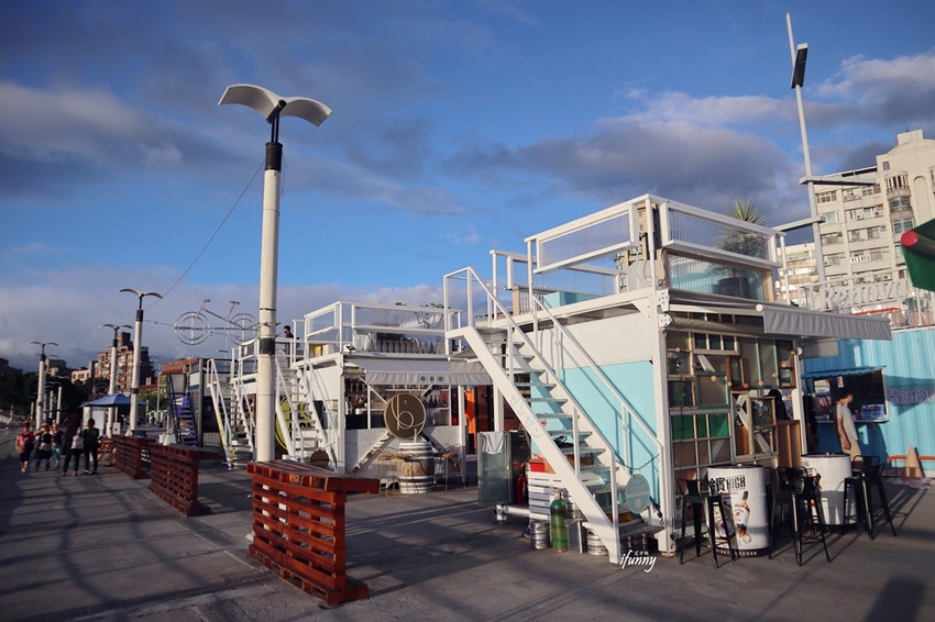大稻埕河岸旁近日成立了「PIER5大稻埕河岸特區貨櫃市集」,讓整個河岸風光多了異國風采。由百齡罈品牌推出的首間貨櫃酒吧,擁有「最高顏值酒吧」之稱的「B HOUSE」,就設立在這,已經成了最新熱門打卡景點。百齡罈B House貨櫃酒吧販售美食與特色調酒等,還有大稻埕美景相襯,坐在河景第一排,相當適合下班後與三五好友到此小酌放鬆心情。